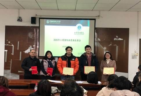 费院长和相关老师为获奖的同学颁发获奖证书,并合影留恋。其中2017级获得语言成绩奖奖学金的是:周新频、汪子淇与余瑞奇,获得全英课程奖奖学金的是:周新频、汪嘉禾;2018级获得语言成绩奖奖学金的是李祯,获得全英课程奖奖学金的是:李祯、王淑雨。