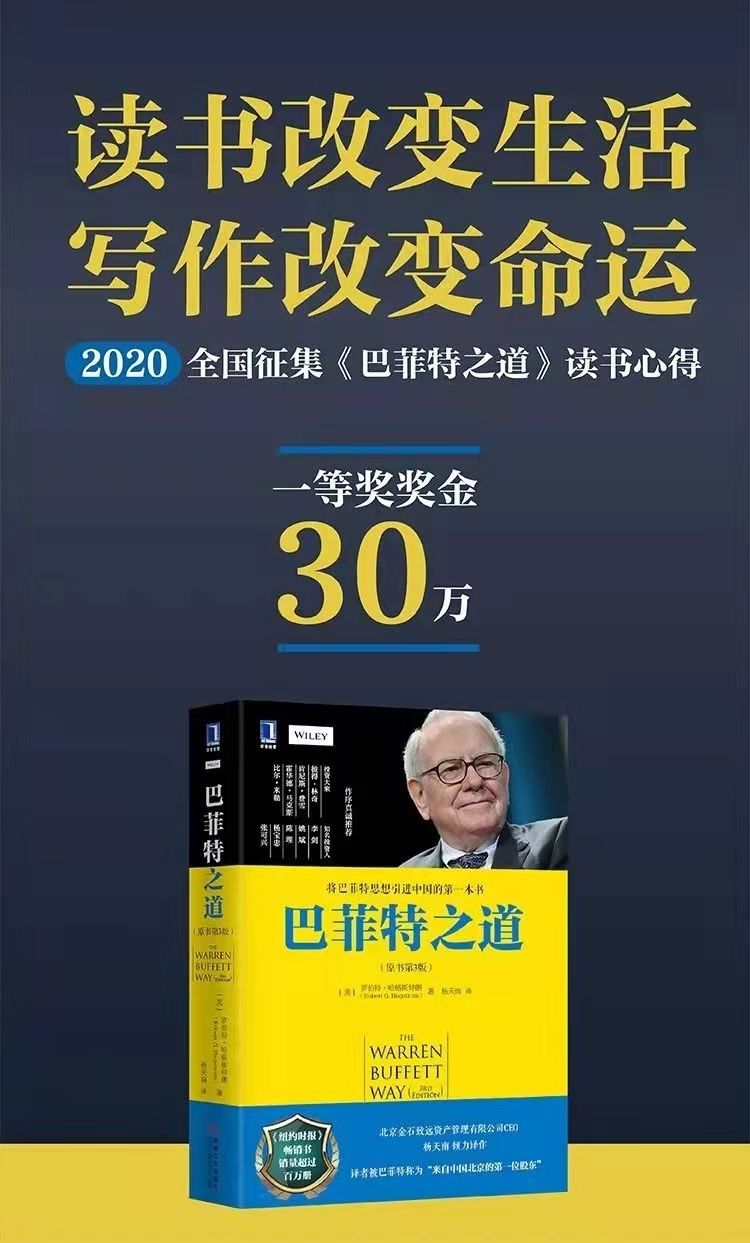 本次征文活动由北京金石致远投资管理有限公司主办,其创始人为我国著名投资家、翻译家、必赢官网客座教授杨天南先生。杨天南先生出版有著作《一个投资家的20年》,译著《巴菲特之道》《巴菲特的投资组合》《巴菲特的第一桶金》《戴维斯王朝》等。杨天南先生举办此次活动,旨在让更多年轻人认识到——“读书改变生活,写作改变命运”。