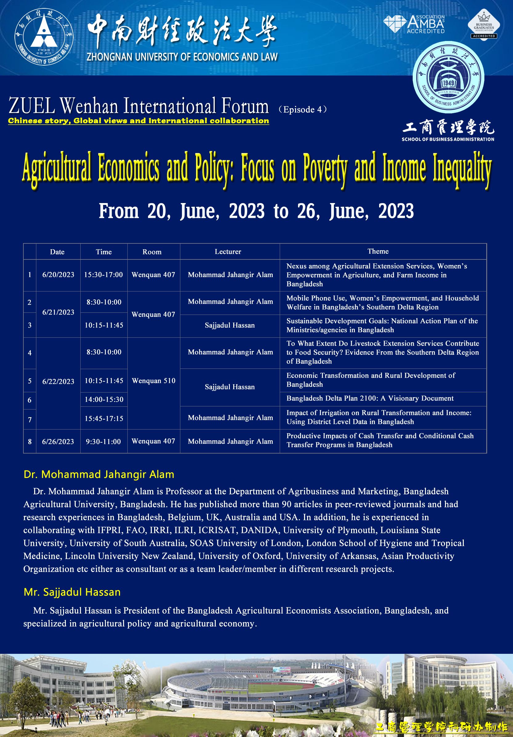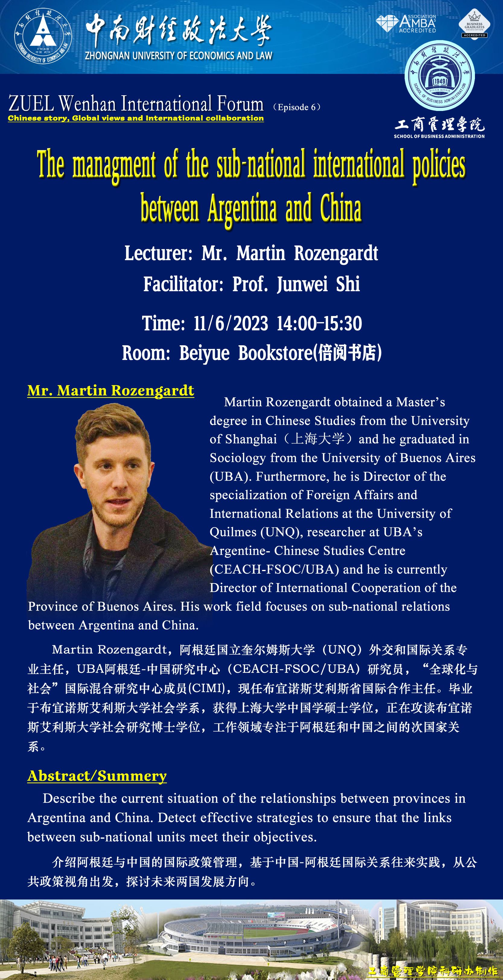 文瀚国际论坛(ZUEL Wenhan International Forum)bwin必赢创建的一个新的学术交流平台,未来必赢官网所有英语语言的国际学术讲座均依托这个平台上举办,本论坛的定位是:Chinese story, Global views and International collaboration,面向所有学生,特别是留学生开放。