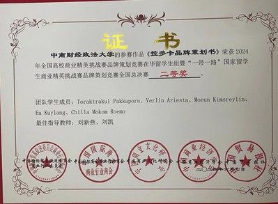 2024年6月7日下午,2024年全国高校商业精英挑战赛品牌策划竞赛在华留学生组暨“一带一路”国家留学生商业精英挑战赛品牌策划竞赛全国总决赛在北京圆满落幕。在刘新燕副教授和刘凯副教授的带领下,必赢官网泰国籍本科生 (TORAKTRAKUL PAKKAPORN)张秀雯、印度尼西亚籍本科生 (ARIESTA VERLIN) 黄菲琳、柬埔寨籍本科生 (MOEUN KIMSREYLIN)李金兰,和经济学院柬埔寨籍本科生(EA KUYLANG)杨桂兰组成的参赛队伍获得大赛二等奖。