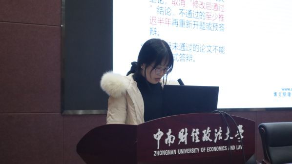 秦续天师姐接着向同学们详细介绍了硕士学位论文的具体流程,并向同学们普及了学位论文作假处理方法、学术不端类型、学术不端处罚以及学术规范的标准,呼吁同学们坚决远离学术不端行为,坚守学术诚信,在科研道路上秉持实事求是的科学精神和严谨认真的治学态度。